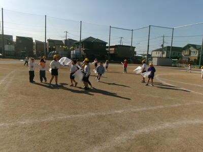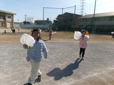 「かぜとあそぶ」にはちょっと風が強めで寒い日でしたが、子どもたちは元気に走り回っていました。