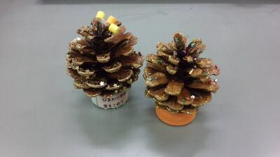 子どもたちから、サプライズで手作りの松ぼっくりクリスマスツリーをもらいました。