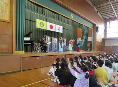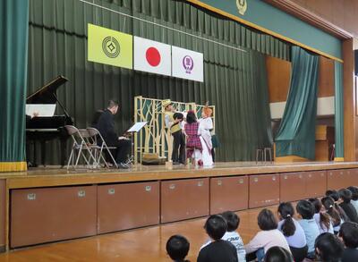 文化庁子供育成総合事業で森のテオリアの皆さんが来校し、オペラや朗読うた物語を演奏してくださいました。